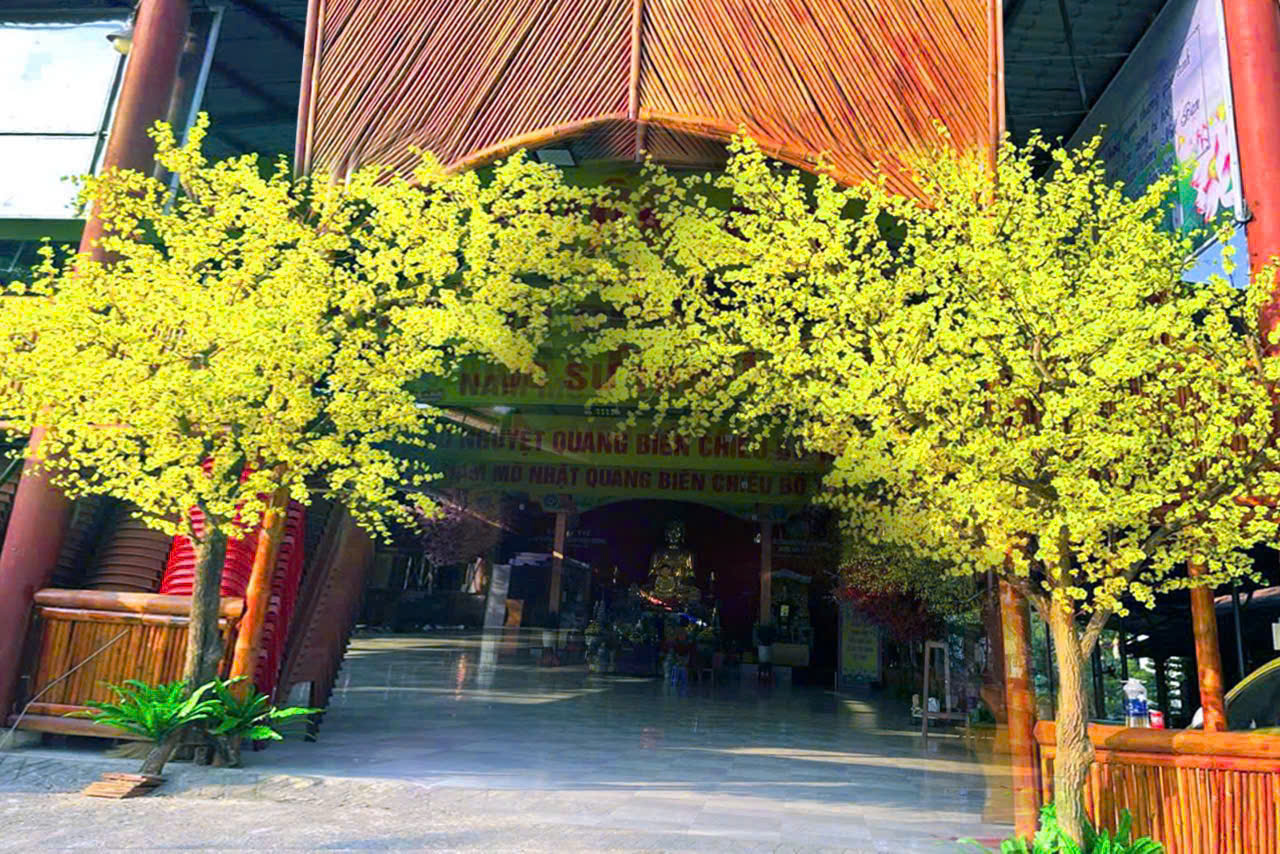 Trang trí chùa Phật Quang tỉnh Thái Nguyên 2 cây hoa mai vàng cao 4.m rộng 3.5m